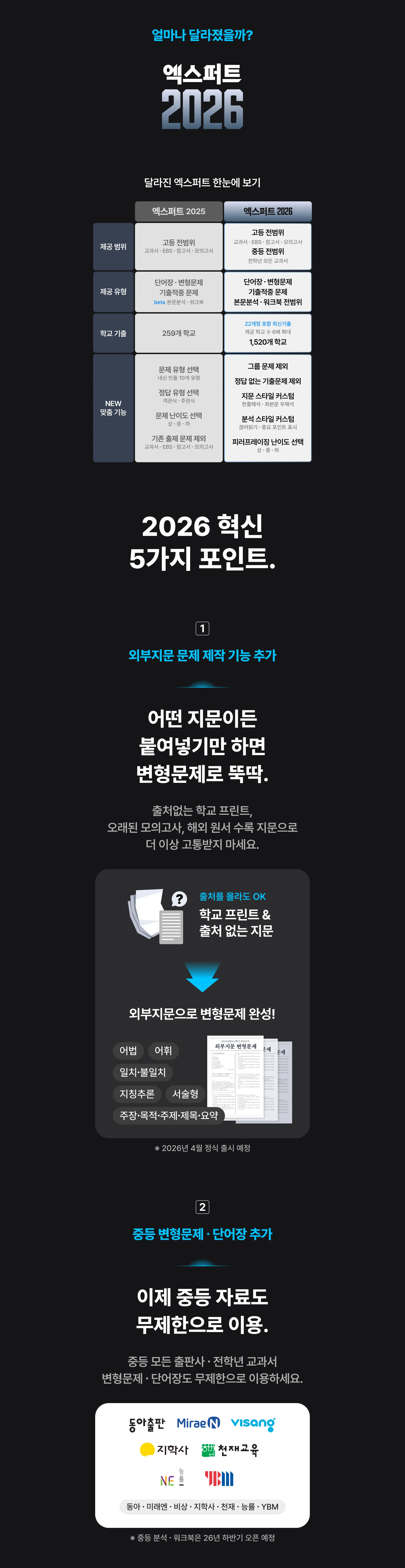쏠북 엑스퍼트 서비스를 활용해 단어장, 본문분석, 워크북, 변형문제, 기출적중 시험지를 무제한으로 제작할 수 있습니다.