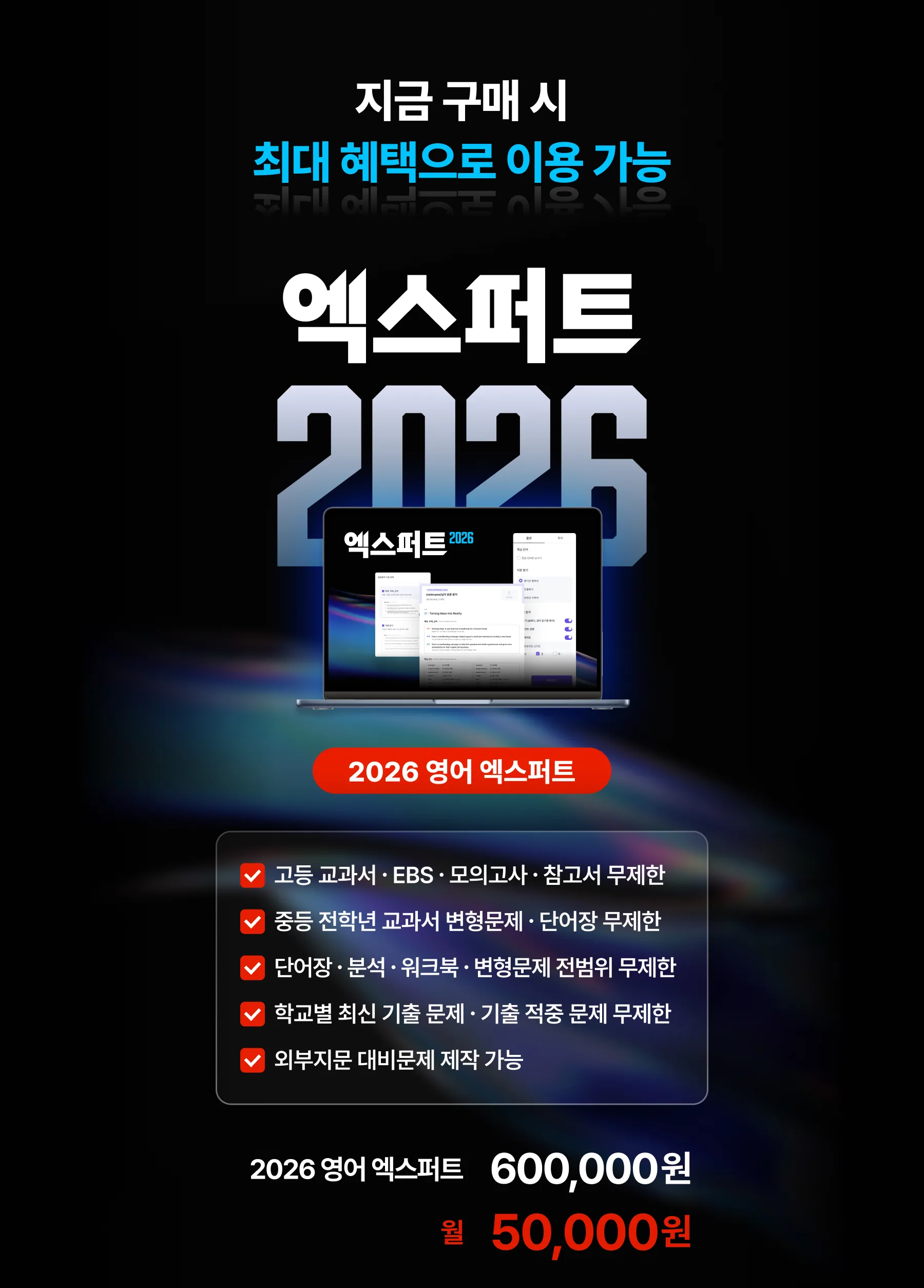 본 상품은 2026년 영어 엑스퍼트를 무제한 이용할 수 있는 상품입니다.