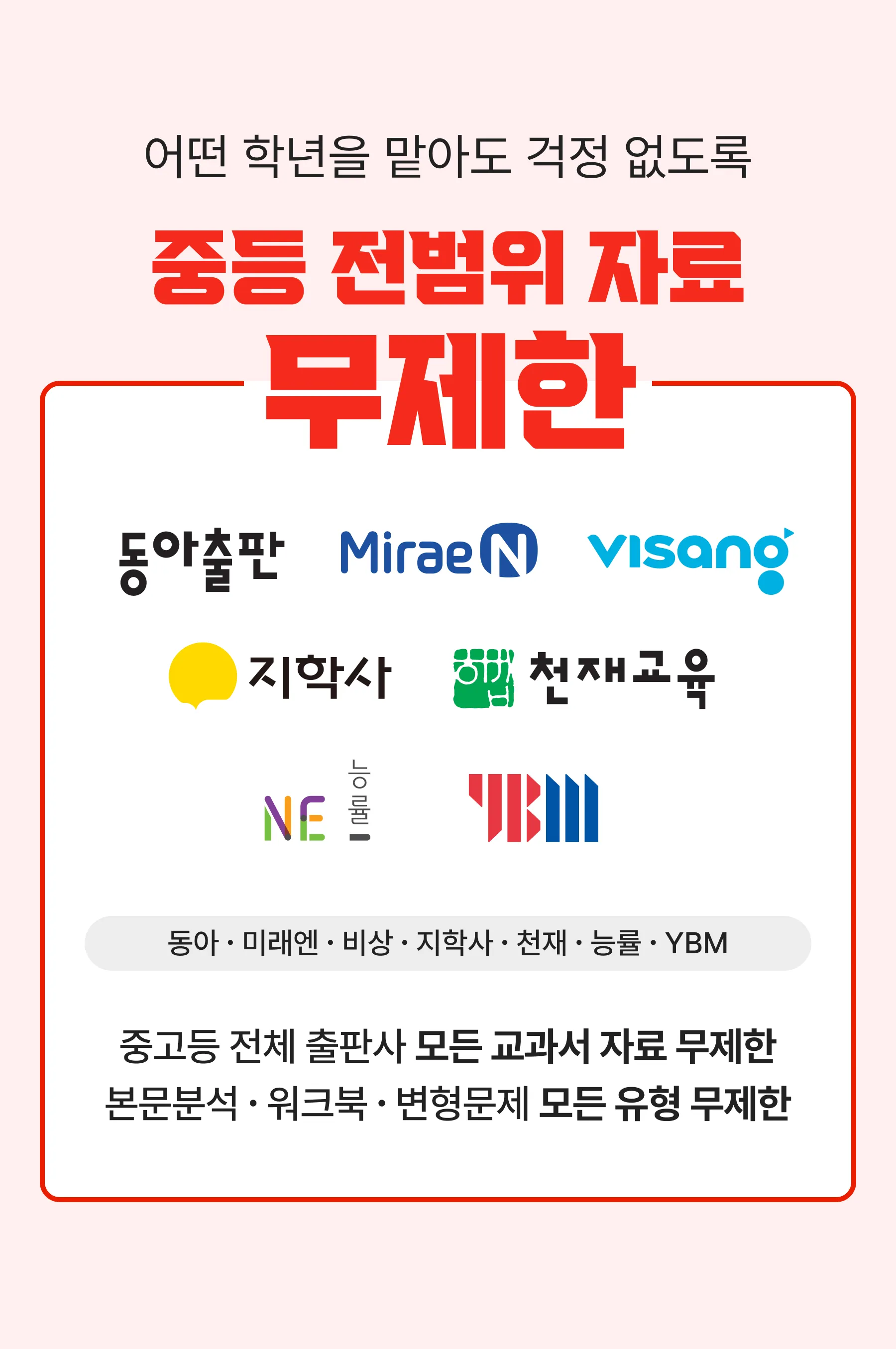 내신 전범위 단어장과 단어 테스트는 문항 수 제한없이 무제한 이용이 가능합니다.