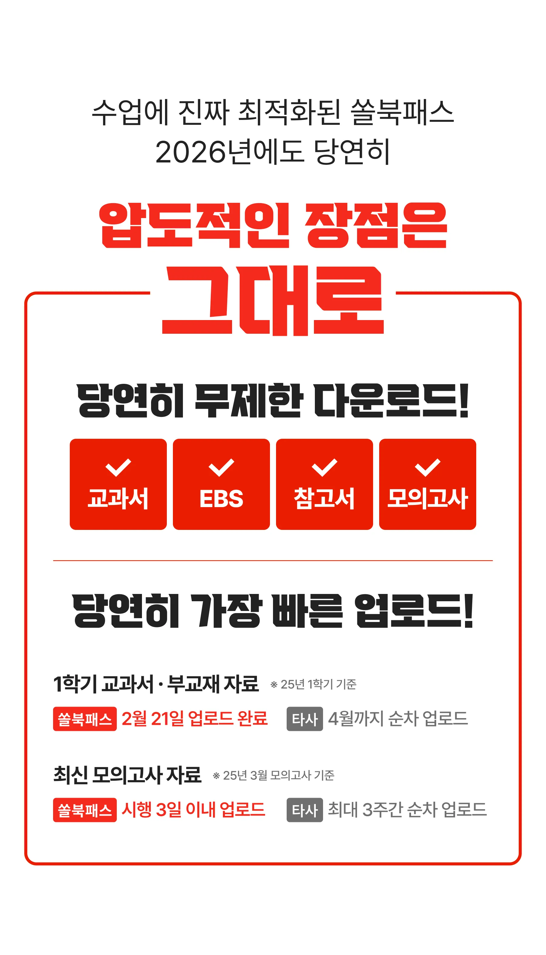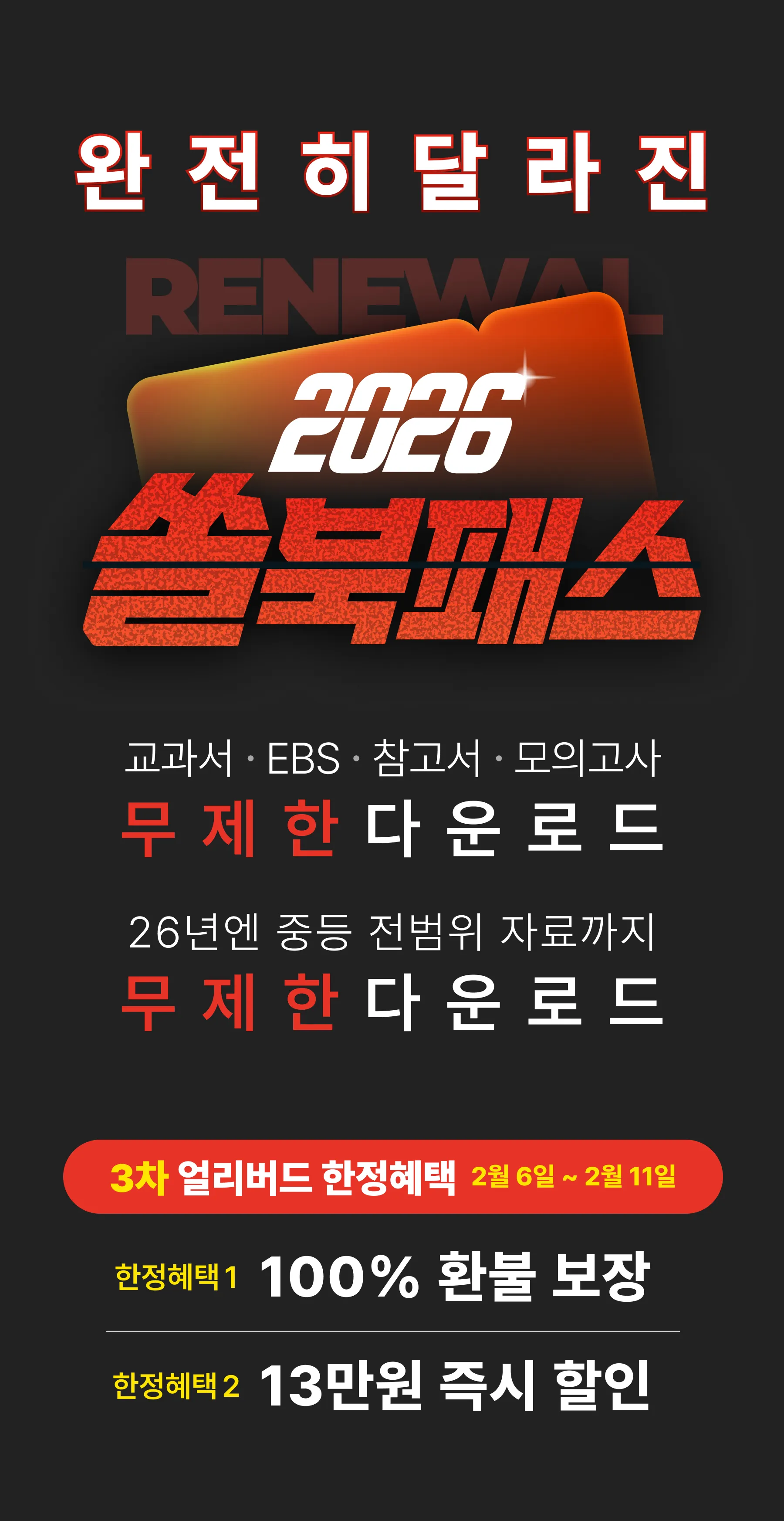 2026년 쏠북패스에는 중등 전학년 교과서 자료가 추가로 제공되며 PDF 무제한 다운로드가 가능합니다.