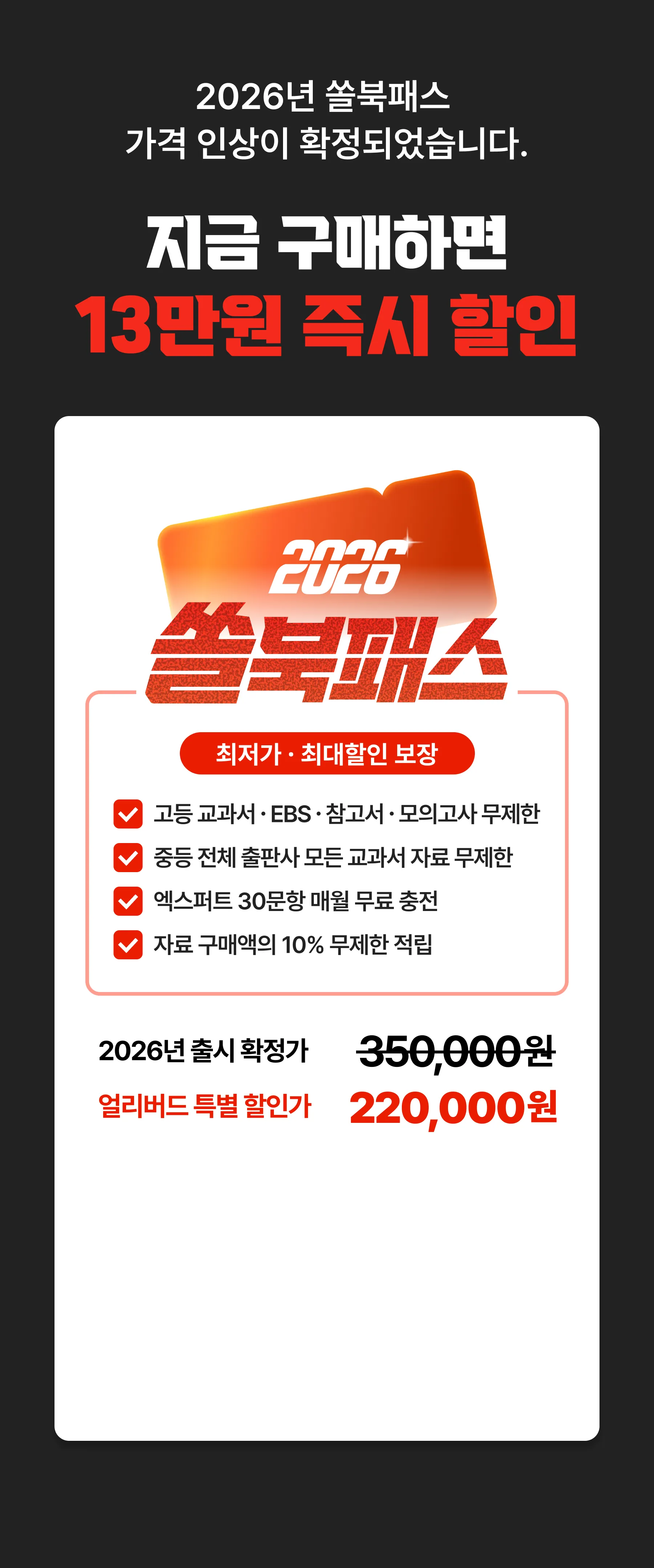 본 상품으로는 2026년 쏠북패스 자료를 무제한으로 이용할 수 있으며 2025년 쏠북패스 자료는 이용이 불가능합니다.